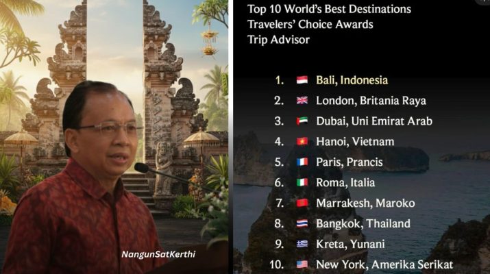 DENPASAR – Gubernur Bali, Wayan Koster, menyampaikan apresiasi dan rasa terima kasih yang mendalam kepada seluruh pemangku kepentingan serta masyarakat Bali yang terus aktif menjaga kualitas pariwisata daerah. Hal ini menyusul keberhasilan Bali meraih peringkat pertama World’s Best Destination 2026 dalam ajang bergengsi Travelers’ Choice Awards: Best of the Best oleh TripAdvisor.
