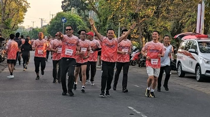 DENPASAR – Sekretaris Daerah Provinsi Bali, Dewa Made Indra, memberikan apresiasi kepada peserta fun run 5K yang diikuti oleh kepala perangkat daerah, staf, serta