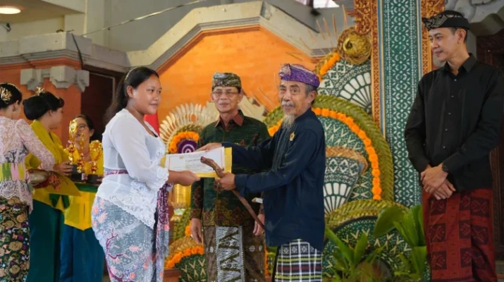 KLUNGKUNG – Bupati Klungkung, I Made Satria, bersama Wakil Bupati Tjokorda Gde Surya Putra menghadiri peringatan puncak HUT ke-38 Wanita Hindu Dharma Indonesia (WHDI) Kabupaten Klungkung yang berlangsung khidmat di Balai Budaya Ida Dewa Agung Istri Kanya, Minggu (8/2). Acara ini turut dihadiri oleh Ida Dalem Semaraputra, Ketua TP PKK Kabupaten Klungkung Ny. Eva Satria, serta Kepala Dinas Sosial P3A Kabupaten Klungkung, I Gusti Agung Gede Putra Mahajaya.