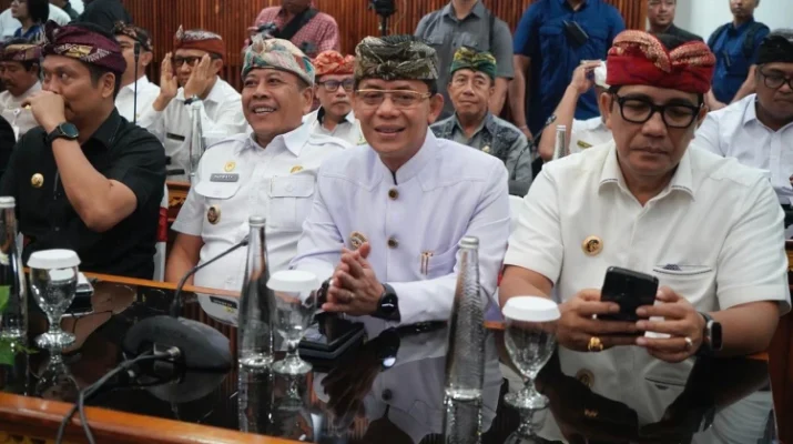 DENPASAR – Bupati Klungkung, I Made Satria, menghadiri Rapat Koordinasi Forum Koordinasi Pimpinan Daerah (Forkopimda) Diperluas Tingkat Provinsi dan Kabupaten/Kota se-Bali yang berlangsung di Gedung Wiswa Sabha Utama, Kantor Gubernur Bali, Kamis (19/2). Rapat strategis ini digelar untuk menyelaraskan kebijakan daerah dengan instruksi Presiden RI guna memastikan Bali tetap menjadi destinasi dunia yang aman, asri, dan teratur.